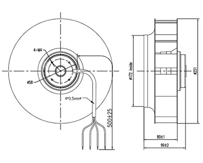 | YWFB2E250P | 230 | 50 | 0.7 | 150 | 2500 | 1300 | 4 | 75 | ⑦ |
