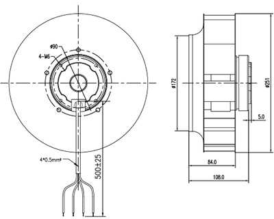 | YWFB4E250 | 230 | 50/60 | 0.25/0.44 | 48/50 | 1400/1650 | 820/990 | 2 | 61/64 | ⑤⑥ |