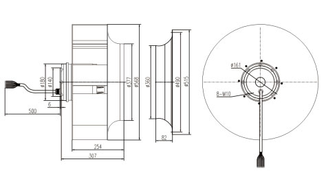后倾式离心风机由过载热保护外转子电机、高效后倾式圆弧形离心叶轮两部分组成。叶轮全部采用模具化生产,经精密动平衡机器高速校验,具有体积小,效率高,风量大,振动小,噪音低,性能优越,安装调试方便等优点,是空调、净化、冷冻行业较理想的配套产品。广泛适用于宾馆、饭店、学校、工厂等场所和民用、工业建筑的通风换气。